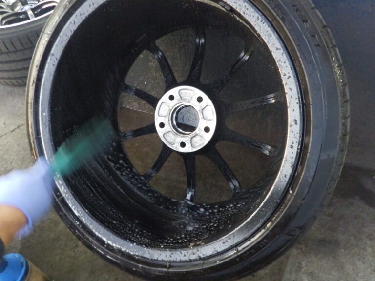 ハブ部分の錆取り、防錆処理を行いホイールは、裏も表も洗います。今回は、お客様のご希望でブレーキフルード交換