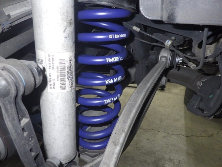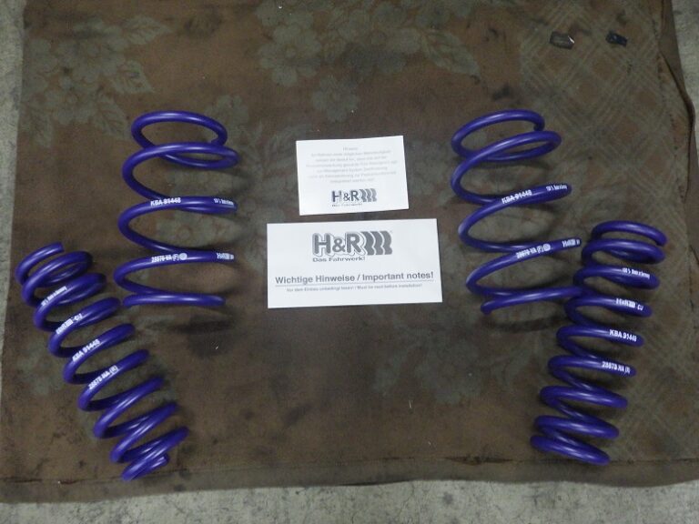 F87M2コンペのお客様にH&Rダウンサス取り付け作業を行いました。当店で取り付けの際には、