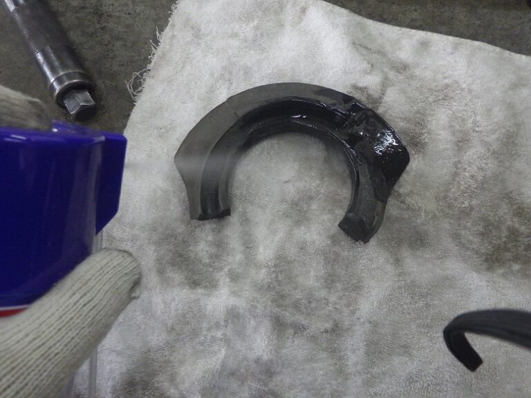 再利用する純正部品は、綺麗にしてから取り付けします。リアのスプリングの底面取り付け部には、砂利が