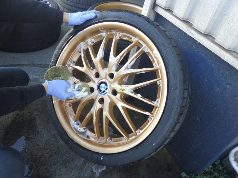 ハブ部分の錆取り、防錆処理を行いホイールは、裏も表も洗います。