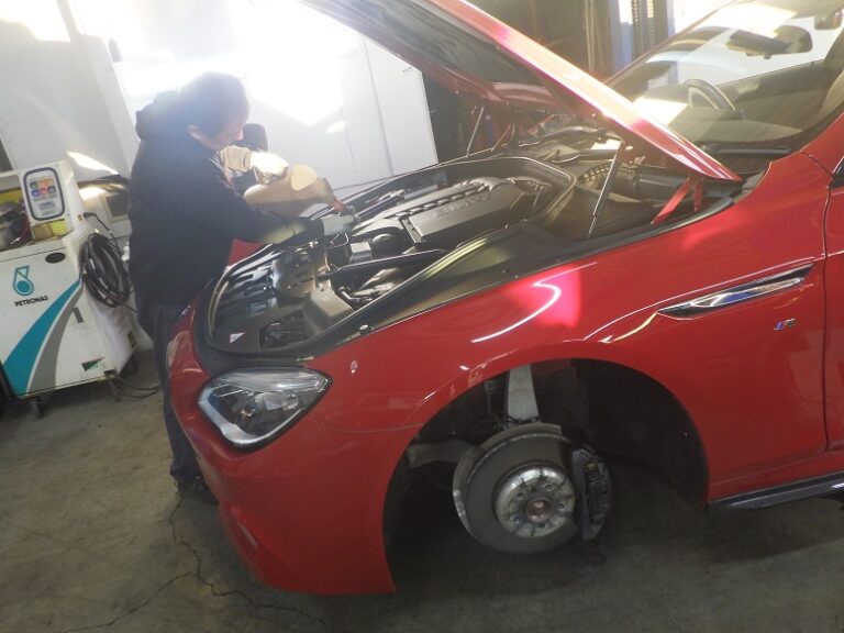 最後にBMW専用テスターを車両に接続してコンピューター診断を行いエラーチェック、消去、サービスインターバルリセット