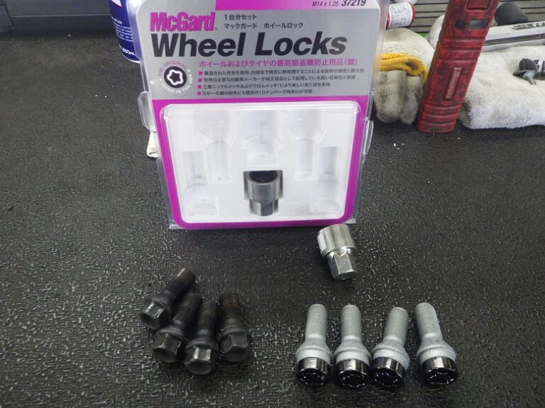 お客様のご要望でフロントのハブベアリングを左右交換してホイール盗難防止のマックガードのボルトを