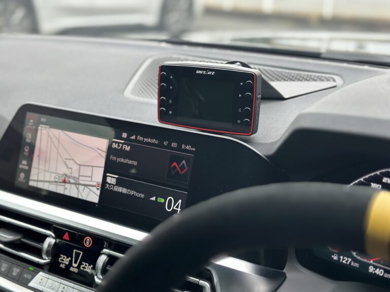 で処理しました。G82のダッシュ上のスピーカーカバーの形状に少し合わせた形状でステーは、両面テープで