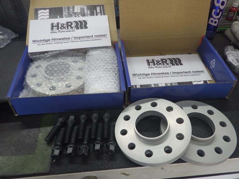 F80M3のお客様にH&Rスペーサー前後の取り付けを作業しました。事前にご来店頂き現車確認をして
