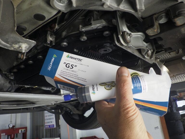 当店では、オリジナルルブロス製ATF使用にて交換を行います。交換後は、シフトショックも低減されて