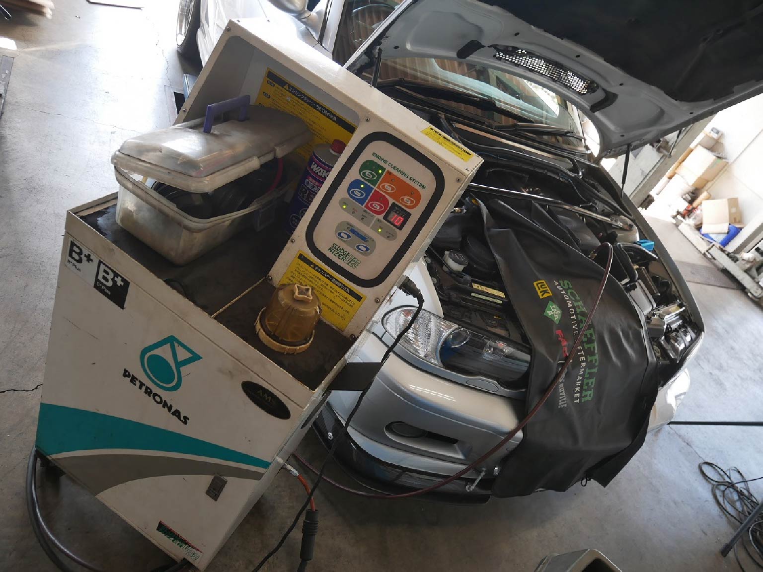 従来エンジン内部を洗浄するためには、分解作業(各パーツの洗浄作業:オーバーホール)が必要でした。しかし、このペトロナスエンジンクリーニングは専用の機器と洗浄液により、エンジンを停止したままの状態でオイルラインに付着した汚れ(半固形のスラッジやカーボン)を取り除き、新車時のような性能に回復します。 新車から1〜2年の期間でもエンジンの内部は想像以上に汚れています。これをいつまでも野放しにしておくと、内部を循環し続け、金属粉による各部への摩耗が進行することとなります。エンジンをベスト内部洗浄サービスによって内部汚染物質を取り去れば、エンジンをベストな状態に保ち続けることができます。